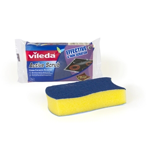 Active Scrub är en allsvamp från Vileda som tar bort den riktigt svåra smutsen utan att repa ytan. Active Scrub är så effektiv och skonsam att du kan använda den på Teflon-belagda ytor. Den speciella ytstrukturen lyfter bort smutsen, som en fingernagel - skonsamt men effektivt! Active Scrub är en idealisk svamp till så gott som alla städuppgifter som kräver tuffa tag.